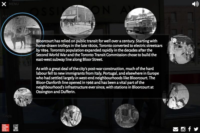 Each instalment also includes hotspots which highlight topics including different immigrant communities in Bloorcourt and the history of the neighbourhood. Be sure to look for them as you explore the project!